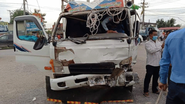 រថយន្តដឹកទំនិញបើកបរលឿនដូចព្យុះប្រុងឆ្លងកាត់ភ្លើងស្តុបទៅបុកម៉ូតូប៉ើង និងឡាន រួចបន្តបុកផ្ទះពលរដ្ឋខូចខាតយ៉ាងដំណំ