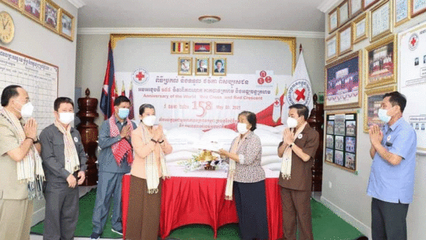 លោកជំទាវកិត្តិសង្គហបណ្ឌិត មែន សំអន បាននាំយក មូលនិធិរបស់សប្បុរសជនអង្ករចំនួន៦,១២៥ គ.ក្រ ថវិកា ២០,០០០ ដុល្លារ ប្រគល់ ជូនសាខាកាកបាទក្រហមកម្ពុជាខេត្តស្វាយរៀង