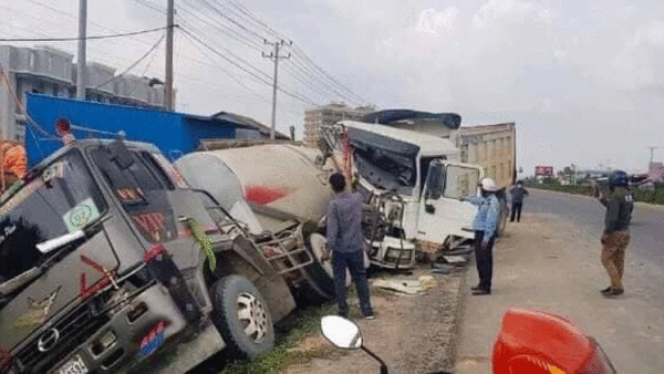 ឡានធំ២គ្រឿងប៉ះគ្នាធ្លាក់ផ្លូវ ភាគីទាំងសងខាងចរចាគ្នាបញ្ចប់រឿង