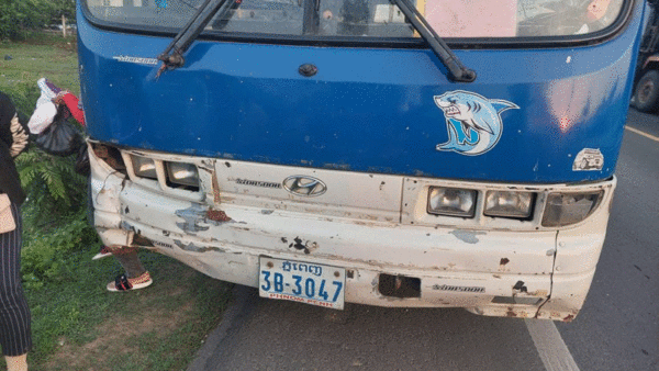 អ្នកបើកម៉ូតូមិនគោរពសិទ្ធិអាទិភាពត្រូវរថយន្តដឹកកម្មករក្មការិនីបុកស្លាប់ម្នាក់រងរបួសធ្ងន់២នាក់នៅក្រុងស្វាយរៀង
