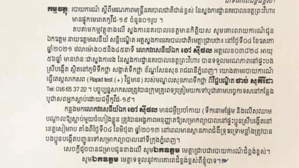 សេចក្ដី បំភ្លឺ ព័ត៌ មាន របស់ ស្នងការដ្ឋាន នគរបាល ខេត្ត ព្រះវិហារ