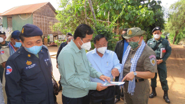 អភិបាលខេត្តកំពង់ចាម ចុះពិនិត្យស្ថានភាពបិទខ្ទប់ភូមិ បន្ទាប់ពីរកឃើញអ្នកវិជ្ជមានកូវីដ-១៩ នៅ ស្រុកកងមាស និង ស្រុកស្រីសន្ធរ