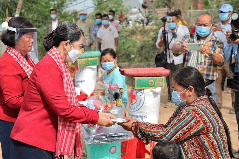 ខេត្តស្វាយរៀង៖ នៅថ្ងៃព្រហស្បតិ៍ ១០រោច ខែពិសាខ ឆ្នាំឆ្លូវ ត្រីស័ក ព.ស២៥៦៥ ត្រូវនឹងថ្ងៃទី ៦ ខែឧសភា ឆ្នាំ ២០២១ លោកជំទាវកិត្តិសង្គហបណ្ឌិត ម៉ែន សំអន គណៈកិត្តិយសសាខាកាកបាទ ក្រហមកម្ពុជា ខេត្តស្វាយរៀង ព្រមទាំង ឯកឧត្តម លោកជំទាវ គណៈកម្មាធិការសាខា បានចុះសួរសុខទុក្ខ និងនាំយក អំណោយមនុស្សធម៌ជួយសម្រាលការលំបាកផ្តល់ ជូនប្រជាពលរដ្ឋរងគ្រោះដោយសារខ្យល់កន្ត្រាក់កាលពីថ្ងៃទី ៥ ខែឧសភា ឆ្នាំ ២០២១ កន្លងទៅ ក្នុងស្រុកកំពង់រោទិ៍ ២ ឃុំ គឺឃុំត្នោត ២ គ្រួសារ និងឃុំថ្មី ៣៧ គ្រួសារ សរុប ៣៩ គ្រួសារ (ក្នុងនោះរងគ្រោះធ្ងន់ចំនួន ១៤ គ្រួសារ មធ្យម ១៨ គ្រួសារ តិចតួច ៧ គ្រួសារ ) និងបានចូលរួម រំលែកទុក្ខក្រុមគ្រួសារស្លាប់ដោយសារឆក់ខ្សែភ្លើង ១ នាក់ ។ ក្នុងឱកាសជួបសំណេះសំណាលជាមួយប្រជាពលរដ្ឋទាំងអស់ លោកជំទាវកិត្តិសង្គហបណ្ឌិត ម៉ែន សំអន បានពាំនាំប្រសាសន៍របស់សម្តេចកិត្តិព្រឹទ្ធបណ្ឌិត ប៊ុន រ៉ានី ហ៊ុនសែន ប្រធានកាកបាទក្រហមកម្ពុជា ដែល ផ្តាំផ្ញើសួរសុខទុក្ខ ក្តីនឹករលឹក និងក្តីអាណិតអាសូរ ជាពិសេសក្តីព្រួយបារម្ភ ចំពោះជីវភាពបងប្អូនប្រជាពលរដ្ឋ នៅគ្រប់ទីកន្លែងទាំងអស់ ដែលប្រឈមទៅនឹងឧបទ្ទវហេតុគ្រោះធម្មជាតិ ដែលកើតឡើង ដោយមិនអាចស្មាន បាន ។ ហេតុដូចនេះហើយសម្តេចកិត្តិព្រឹទ្ធបណ្ឌិតប្រធាន បានចាត់ឱ្យមន្ត្រីក្រោមឱវាទចុះជួយបងប្អូន ប្រជាពលរដ្ឋរងគ្រោះទាំងអស់ ដោយនាំយកនូវគ្រឿងបរិភោគ សម្ភារ ប្រើប្រាស់ និងថវិកាមួយចំនួន ដើម្បី ជួយសម្រាលការលំបាកទៅតាមស្ថានភាពរងគ្រោះជាក់ស្តែង របស់គ្រួសាររងគ្រោះ ធ្ងន់-ស្រាលនីមួយៗ ព្រមទាំងបានពាំនាំនូវសារអំពាវនាវ ឱ្យមានការប្រុងប្រយ័ត្នគ្រប់ពេលវេលាតាមរយៈការតាមដាន សេចក្តីជូនដំណឹងស្តីពីស្ថានភាពអាកាសធាតុ របស់ក្រសួងធនធានទឹក និងឧតុនិយម និងវិធានការត្រៀម បង្ការផ្សេងៗទៀត ។ ជាមួយគ្នានេះលោកជំទាវ បានពាំនាំសេចក្តីអំពាវនាវរបស់សម្តេចកិត្តិព្រឹទ្ធបណ្ឌិត ប៊ុន រ៉ានី ហ៊ុនសែន ដល់ប្រជាពលរដ្ឋទាំងអស់ សូមបន្តចូលរួមអនុវត្តតាមការអំពាវនាវរបស់សម្តេចតេជោ នាយករដ្ឋមន្ត្រី និងត្រូវមានស្មារតីប្រុងប្រយ័ត្នខ្ពស់ជានិច្ច ក្នុងការទប់ស្កាត់រលកទីពីរនៃការចម្លងវីរុសកូវីដ-១៩ នៅកម្ពុជា តាមរយៈការអនុវត្តនូវវិធានការជាបន្តបន្ទាប់ របស់ក្រសួងសុខាភិបាល ជាពិសេសការរក្សាអនាម័យ លាងដៃឲ្យស្អាត ពាក់ម៉ាស (ក្នុងករណីចាំបាច់) ប្រើកន្សែងឬក្រមា ឬក្រដាស់ ជូតមាត់សម្រាប់ខ្ទប់មាត់ ពេលក្អក ឬកណ្តាស់ និងការរក្សាគម្លាតសុវត្ថិភាពសង្គម និងគម្លាតសុវត្ថិភាពបុគ្គល ។ ទន្ទឹមនឹងនេះ សូម ប្រជាពលរដ្ឋទាំងអស់យក ត្រូវរួមគ្នា ថែរក្សាសន្តិភាព រស់នៅជាមួយគ្នាប្រកបដោយភាពសុខដុមរមនា និង ខិតខំប្រកបរបរបង្កប