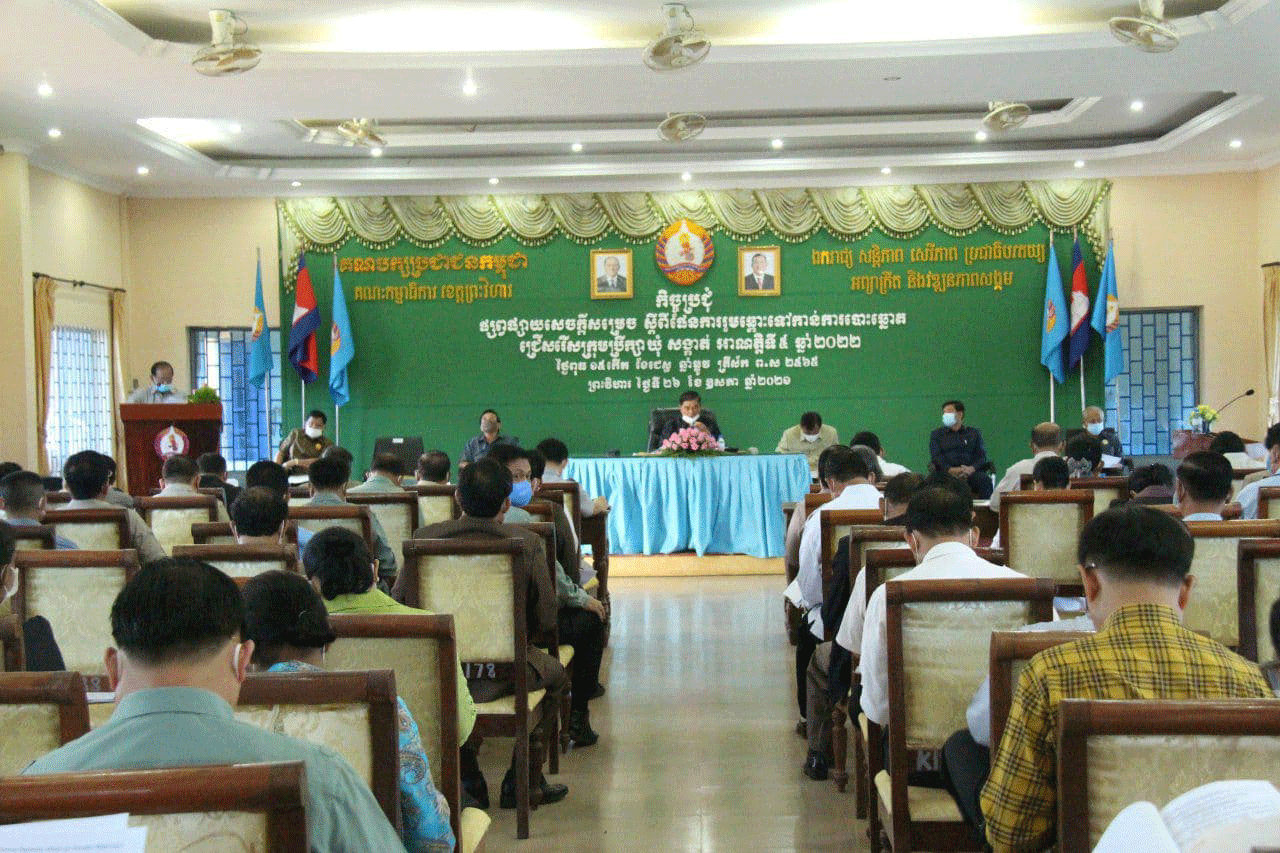 ព្រះវិហារៈ ថ្ងៃទី២៦ ខែឧសភា ឆ្នាំ២០២១ នៅទីស្នាក់ការគណបក្សប្រជាជនកម្ពុជាខេត្តព្រះវិហារ ឯកឧត្តម មាស សុភា សមាជិកគណៈអចិន្ត្រៃយ៍ គណៈកម្មាធិការកណ្ដាល និងជាប្រធានក្រុមការងារចុះមូលដ្ឋានខេត្ត បានអញ្ជើញជាអធិតីក្នុងកិច្ចប្រជុំផ្សព្វផ្សាយសេចក្ដីសម្រេច ស្ដីពីផែនការរួមឆ្ពោះទៅកាន់ការបោះឆ្នោត ជ្រើសរើសក្រុមប្រឹក្សា ឃុំ/សង្កាត់អាណត្តិទី៥ ឆ្នាំ២០២២។ កិច្ចប្រជុំនេះមានការអញ្ជើញចូលរួមពីសំណាក់ថ្នាក់ដឹកនាំគណបក្សថ្នាក់កណ្ដាល និងថ្នាក់ដឹកនាំគណ បក្សថ្នាក់ខេត្ត/ស្រុក ឃុំ/សង្កាត់ និងបណ្ដាថ្នាក់ដឹកនាំពីគ្រប់សាខាទាំងអស់ក្នុងខេត្ត។ បន្ទាប់ពីមតិបើកអង្គប្រជុំ និងការអាននូវសេចក្ដីសម្រេចស្ដីពីផែនការរួមឆ្ពោះទៅកាន់ ការបោះឆ្នោត ជ្រើសរើសក្រុមប្រឹក្សាឃុំ/សង្កាត់ ឯកឧត្តម សួស យ៉ារ៉ា សមាជិកគណៈកម្មាធិការកណ្ដាល និងជាអនុប្រធានក្រុមការងារគណបក្សចុះមូលដ្ឋានខេត្តព្រះវិហារ បានជំរុញដល់សមាជិក សមាជិការនៃកិច្ចប្រជុំទាំងអស់បង្កើនការយកចិត្តទុកដាក់ បន្តថែរក្សាការពារ និងបន្តការទប់ស្កាត់ការ រីរាលដាលនៃជម្ងឺកូវីដ១៩ ដោយអនុវត្តឲ្យបាននូវ៣កុំ និង៣ការពារ និងបន្តពង្រឹងដល់គ្រប់បណ្ដា បក្សប្រជាជនទាំងអស់ក្នុងមូលដ្ឋានដើម្បីចូលរួមយកភាពឈ្នះក្នុងឱកាសនៃការបោះឆ្នោតជ្រើសរើសក្រុមប្រឹក្សា ឃុំ/សង្កាត់អាណត្តិទី៥ ឆ្នាំ២០២២ខាងមុខ។ ឯកឧត្តមសង្កត់ធ្ងន់ទៅលើការពង្រឹងសេវាសាធារណៈ និងសុខភាពសាធារណៈ ថ្នាក់ស្រុកត្រូវជម្រុញ និងក្ដាប់ឲ្យបានពីស្ថិតិក៏ដូចជាសន្ទស្សន៍ឲ្យបានជាក់លាក់ដោយមានក្រុមយុវជនចូលរួមសហការអនុវត្តន៍។ ឯកឧត្តមបានបន្ថែមទៀតថា នៅសប្ដាហ៍ទី១ ខែមិថុនា ឆ្នាំ២០២១ ខាងមុខនេះ និងរៀបចំពិធីបញ្ចុះបឋមសិលាសាសងអាគាមន្ទីរពិសោធន៍នៅក្នុងបរិវេណមន្ទីរពេទ្យបង្អែក១៦មករាខេត្តព្រះវិហារ និងសម្ពោធដាក់ឲ្យប្រើប្រាស់នៅមុនពេលបោះឆ្នោត។ នេះគឺគោលបំណងទ្រ ទ្រង់វិស័យសុភាពសាធារណៈជូនប្រជាពលរដ្ឋ។មានប្រសាន៍ក្នុងកិច្ចប្រជុំ ឯកឧត្តម មាស សុភា សមាជិកគណៈអចិន្ត្រៃយ៍ គណៈកម្មាធិការកណ្ដាល និងជាប្រធានក្រុមការងារចុះមូល ដ្ឋានខេត្ត ព្រះវិហារ បានពាំនាំនូវការផ្ដាំផ្ញើ និងសួសុខទុក្ខពីសំណាក់សម្ដេចតេជោប្រធានគណបក្ស និងសម្ដេចកិត្តិព្រឹទ្ធបណ្ឌិត ។ ឯកឧត្តមបានជម្រុញឲ្យមានការបន្តថែរក្សាឲ្យបាននូវ៣កុំនិង៣ការពារដើម្បីទប់ស្កាត់ឲ្យបាននូវការឆ្លងរីករាលដាលនៃជម្ងឺកូវីដ១៩ និងបង្កើនការអនុវត្តន៍ឲ្យសកម្មក្នុងការសហការ គ្រប់បណ្ដាញពាក់ពន្ធ័ ទាំងអស់របស់គណបក្សក្នុងចរន្តនៃចលនាសកម្មក្នុងមូលដ្ឋាន ដោយត្រូវមានផែនការ និងកម្មវិធី ច្បាស់លាស់ក្នុងការចុះជួបស៊ីជម្រៅជាមួយសមាជិកបក្ស និងប្រជាពលរដ្ឋ ន