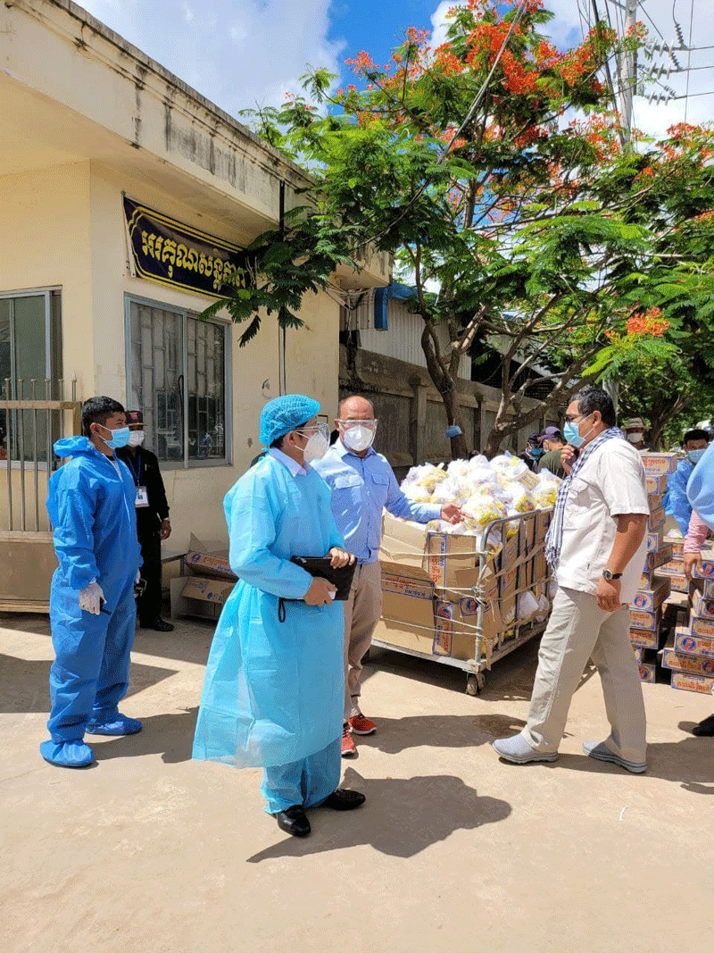 ឯកឧត្តម បណ្ឌិត បាន កោត សរសើរ ដល់ប្អូនៗ ក្មួយ ៗ កម្មករ កម្មការនី មួយ ចំនួន ដែល ស្នើសុំ ធ្វើ ចត្តាឡីស័ក នៅ ក្នុង រោងចក្រ ដោយសារ ពួកគាត់ យល់ ដឹង ពុំចង់ ចម្លងរោគដល់ ក្រុម គ្រួសារ របស់ ពួកគាត់ ហើយ ពួកគាត់ បាន បញ្ជាក់ ថា នៅ ក្នុង រោងចក្រ ត្រូវ បាន ថៅកែ រោងចក្រ គិតគូរ តាំង ពី ការហូបចុក និង កន្លែង ស្នាក់ នៅ និង មិន មាន ការ កាត់ ប្រាក់ ខែ ទៀតផង ។