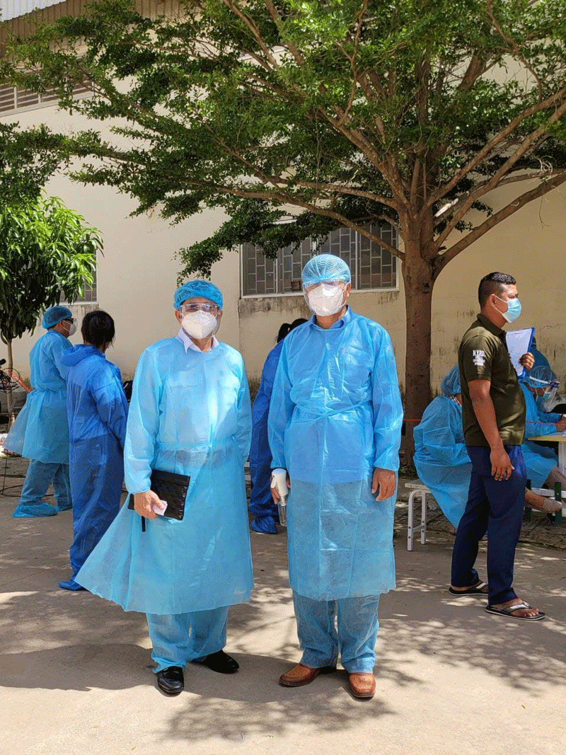 ខេត្តស្វាយរៀង៖ ឯកឧត្តម បណ្ឌិត កែរ រដ្ឋា មានប្រសាសន៍ ក្នុងឱកាសចុះពិនិត្យ ការងារ យក សំណាកលើកទី៣ ដល់ កម្មករ កម្មការនី រោងចក្រ យូលី១ ក្នុង តំបន់ សេដ្ឋកិច្ច ពិសេស សាន តុង ក្រុង បាវិត នៅថ្ងៃទី ២៩ ខែឧសភា ឆ្នាំ២០២១ នេះ ចូលរួម អម ដំណើរ ឯកឧត្តម បណ្ឌិត មាន លោក វេជ្ជបណ្ឌិត គុជ ស៊ីថា អនុ ប្រធាន មន្ទីរសុខា ភិបាល ខេត្ត ទទួលបន្ទុក បច្ចេកទេស ជំងឺ កូវីដ-១៩ លោក វេជ្ជបណ្ឌិត ទែន សាបុណ្យ អនុ ប្រធាន មន្ទីរ សុខាភិបាលខេត្ត ទទួល បន្ទុកការងារ រុករក ស្រាវជ្រាវ ជំងឺ កូវីដ-១៩ និង លោកវេជ្ជ បណ្ឌិត អុឹម បុត្រ ប្រធាន ផ្នែក ចត្តាឡីស័ក ។