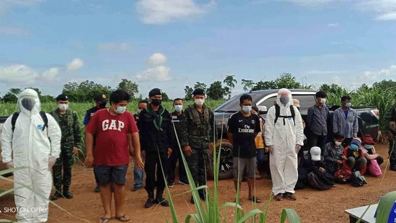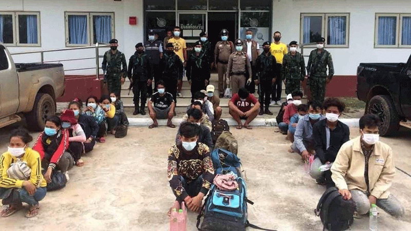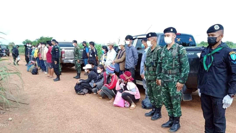 ខេត្តបន្ទាយមានជ័យ៖ ទាហានជួរមុខថៃអង្គភាពទី13 ឃាត់ខ្លួនមេខ្យល់ជនជាតិថៃ02នាក់ ដែលនាំ ពលករខ្មែរ19នាក់លួចឆ្លងដែនទៅធ្វើការងារនៅប្រទេសថៃ ដោយខុសច្បាប់ នៅថ្ងៃទី29 ខែឧសភា ឆ្នាំ2021 ស្ថិតនៅតាមក្រវ៉ាត់ព្រំដែនកម្ពុជា.ថៃ ក្នុងស្រុកអរញ្ញប្រាថេត ខេត្តស្រះកែវ ប្រទេសថៃ។