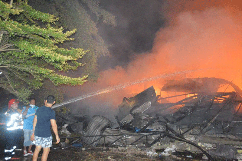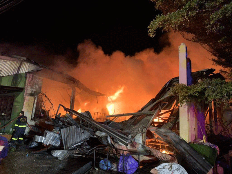 (បន្ទាយមានជ័យ)៖ តាមសេចក្តីរាយការណ៍បានឲ្យដឹងថា នៅវេលាម៉ោង 21.00នាទី ថ្ងៃទី14 ខែមិថុនា ឆ្នាំ 2021 ឃ្លាំងស្តុកខោអាវគីម កំរាលព្រំ កន្ទេល របស់អាជីវករខ្មែរនៅផ្សារ(ផៃលីន)ផ្សារ៉ុងក្លឿ ត្រូវបានអគ្គីសភ័យឆាបឆេះទាំងស្រុង ដែលស្ថិតនៅទល់មុខផ្សារBig-C នៅក្នុងភូមិដងងូ ឃុំប៉ារ៉ៃ ស្រុកអរញ្ញ ខេត្តស្រះកែវ ប្រទេសថៃ។