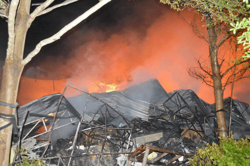 សមត្ថកិច្ចថៃបានឲ្យដឹងថា ឃ្លាំងដែលឆេះនេះ ជាឃ្លាំងដែលខ្មែរបានជួលទុកដាក់កំរាលព្រំ កន្ទេលធំ និងខោអាវគីម គឺឃ្លាំង K-72 និង K73។ សមត្ថកិច្ចថៃបញ្ជាក់ថា បើយោងតាមអ្នកយាមឃ្លាំងបានរៀបរាប់ប្រាប់ថា មុនកើតហេតុ មានការឆ្លងចរន្តអគ្គីសនីពីលើដំបូងឃ្លាំង និងមានផ្កាភ្លើងធ្លាក់មកលើឃ្លាំង ក៏មានអគ្គីភ័យឆាបឆេះតែម្តង ហើយក្នុងឃ្លាំងនោះផ្ទុករបស់សុទ្ធតែជាក្រណាត់ដែលបណ្តាលឲ្យមានការឆាបឆេះលឿនខ្លាំង ធ្វើឲ្យឃ្លាំងចំនួនពីរត្រូវខូចខាតទាំងស្រុងតែម្តង។