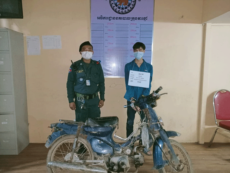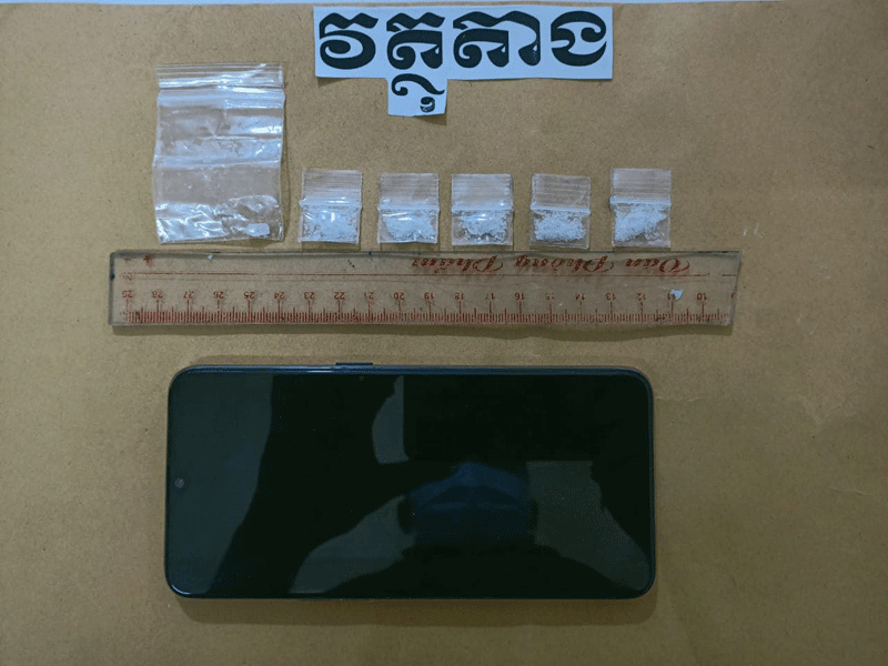 វត្ថុតាងចាប់យករួមមាន ម្សៅក្រាមសថ្លាសង្ស័យជាសារធាតុញៀនចំនួន០៦កញ្ចប់តូច, ម៉ូតូ០១គ្រឿងម៉ាកHONDA CUB ពណ៌ទឹកបិច គ្មានស្លាកលេខនិងទូរសព្ទ០១ គ្រឿងម៉ាកOPPOពណ៌ក្រហម។