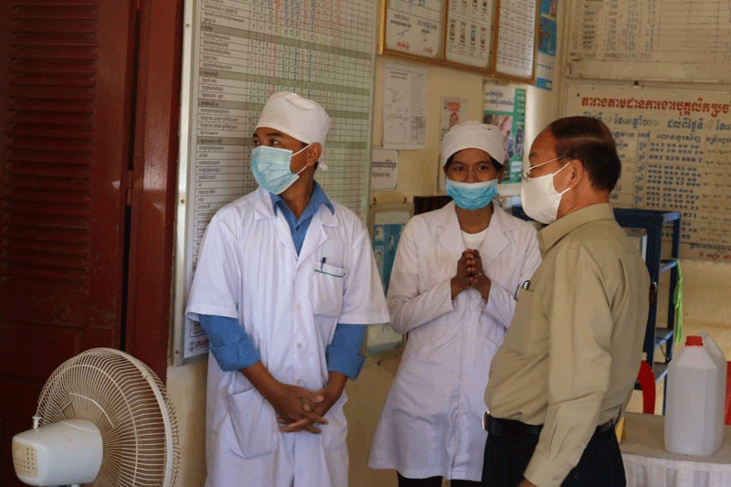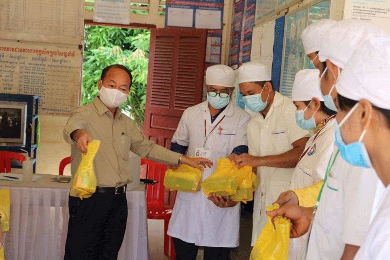 កំពង់ចាម: ឯកឧត្តម វេជ្ជបណ្ឌិត គីមសួរ ភីរុណ ប្រធានមន្ទីរសុខាភិបាលខេត្តកំពង់ចាម រួមនឹង សហការី នាព្រឹកថ្ងៃទី១៧ ខែមិថុនា ឆ្នាំ ២០២១ នេះ បាន អញ្ជើញ ចុះសួរសុខទុក្ខបុគ្គលិកនៅមណ្ឌលសុខភាពឃុំមៀន នៃស្រុកព្រៃឈរ ខេត្តកំពង់ចាម ។