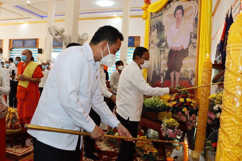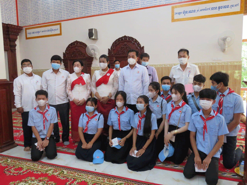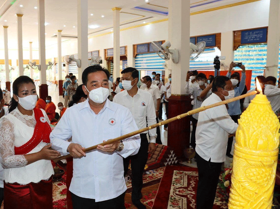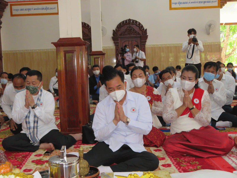 កំពង់ចាម : ឯកឧត្តម អ៊ុន ចាន់ដា ប្រធានគណៈកម្មាធិការសាខាកាកបាទក្រហមកម្ពុជាខេត្ត កំពង់ចាម និងលោកជំទាវ អមដំណើរដោយថ្នាក់ដឹកនាំ សមាជិក សមាជិកា គណៈកម្មាធិការសាខា មន្ត្រីប្រតិបត្តិ ព្រមទាំងអនុសាខាស្រុក បានអញ្ជើញបូជា ធូប ទៀន ផ្កាភ្ញី ថ្វាយព្រះបដិមាករ និងនាំយក ចង្ហាន់ ទេយ្យទាន និងបច្ច័យ ប្រគេនព្រះសង្ឃ គង់នៅវត្តភ្នំជ័យគិរី ហៅភ្នំហាន់ជ័យ ស្ថិត ក្នុងឃុំហាន់ជ័យ ស្រុកកំពង់សៀម ដើម្បីឧទ្ទិសព្រះរាជកុសលថ្វាយ សម្តេចព្រះមហាក្សត្រី នរោត្តម មុនីនាថ សីហនុ ព្រះវររាជមាតាជាតិខ្មែរ ក្នុងសេរីភាព សេចក្តីថ្លៃថ្នូរ និងសុភមង្គល ព្រះប្រធានកិត្តិយស កាកបាទក្រហមកម្ពុជា ក្នុងឱកាសព្រះរាជពិធីបុណ្យចម្រើនព្រះជន្ម ៨៥ យាងចូល ៨៦ព្រះវស្សាដែលនឹងប្រព្រឹត្តទៅ នាថ្ងៃទី១៨ ខែមិថុនា ឆ្នាំ២០២១ នេះ ។