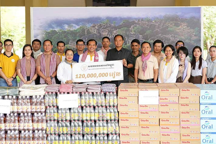 ព្រះវិហារ ៖នៅថ្ងៃ ទី១២ ខែតុលា ឆ្នាំ២០២៥ លោក រ័ត្ន សោភ័ណ ប្រធានសមាគមធនាគារនៅកម្ពុជា និងជានាយកប្រតិបត្តិនៃធនាគារ Maybank បានដឹកនាំគណៈប្រតិភូ និងសមាជិក សមាជិកាជាច្រើនរូប នាំយកនូវអំណោយជាគ្រឿងឧបភោគបរិភោគ និងថវិកា ប្រគល់ជូនដល់រដ្ឋបាលខេត្តព្រះវិហារ បំនុកបំរ៉ុងដល់ពលរដ្ឋភៀសសឹក ស្ថិតនៅបរិវេណសាលាខេត្តព្រះវិហារ ដើម្បីបន្តចែកជូនដល់ប្រជាពលរដ្ឋភៀសសឹក ដែលកំពុងស្នាក់នៅតាមបណ្ដាមណ្ឌលសុវត្ថិភាពទូទាំងខេត្តព្រះវិហារ។