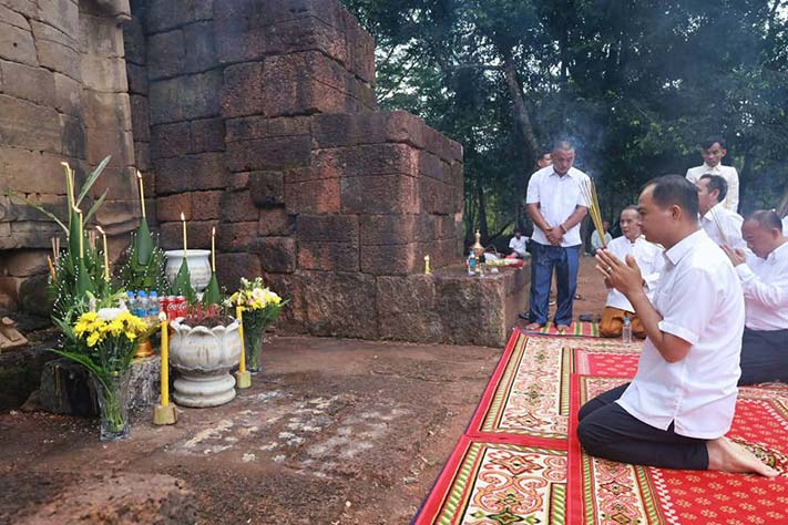ព្រះវិហារ÷ឯកឧត្តម គីម រិទ្ធី អភិបាលខេត្តព្រះវិហារ បានអញ្ជើញដឹកនាំមន្ត្រីរាជការ រៀបចំពិធីបួងសួងសុំសេចក្ដីសុខ សេចក្ដីចម្រើន និងសុខសន្តិភាពយូរអង្វែង ជូនចំពោះព្រះរាជាណាចក្រកម្ពុជា ទាំងមូលនៅប្រាសាទព្រះដំរី និងប្រាសាទចតុមុខ ក្នុងរមណីយដ្ឋានប្រវត្តិសាស្ត្រ ប្រាសាទព្រះខ័នកំពង់ស្វាយ ស្ថិតក្នុងភូមិតាសែង ឃុំរណរិស្ស ស្រុកសង្គមថ្មី ខេត្តព្រះវិហារ។